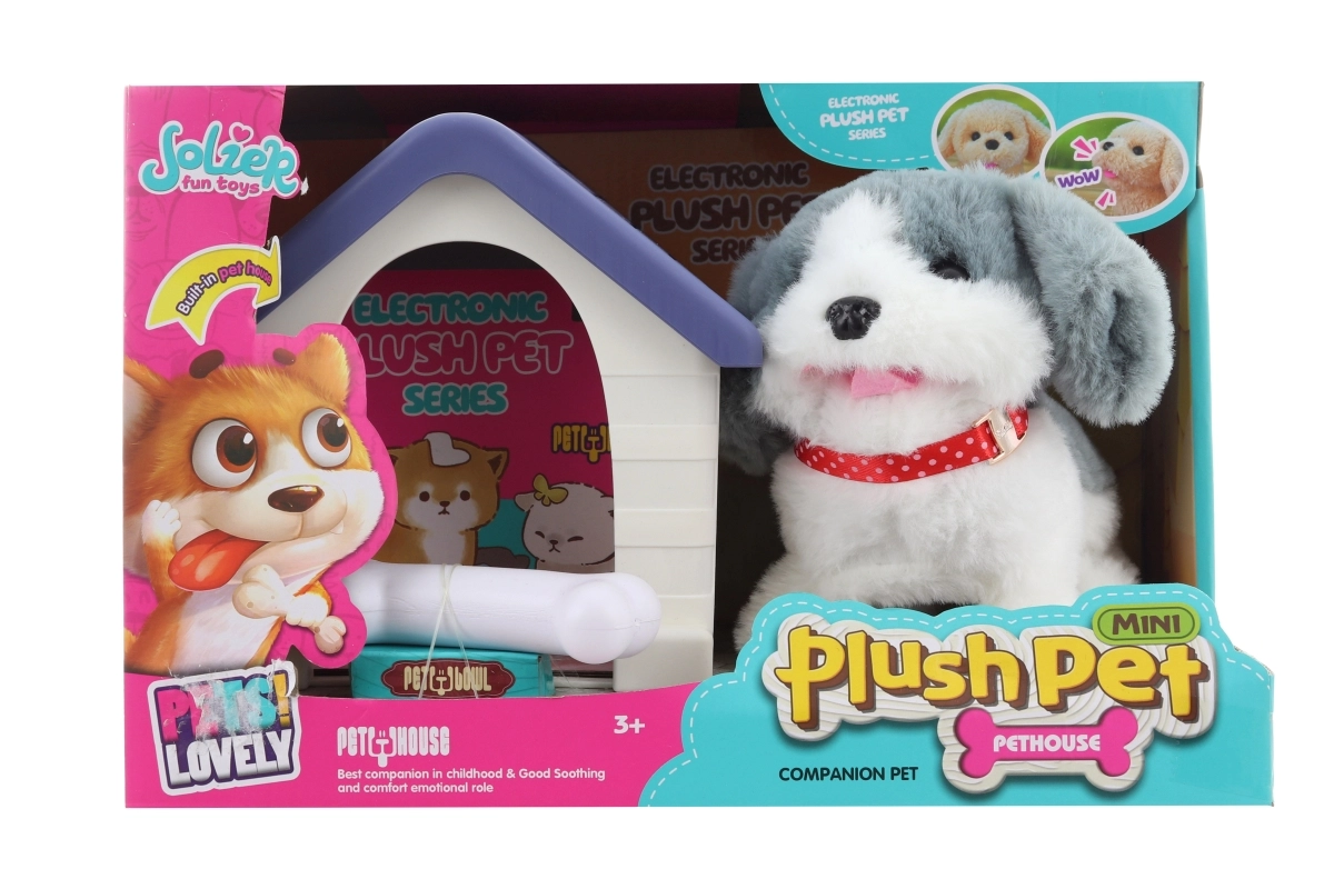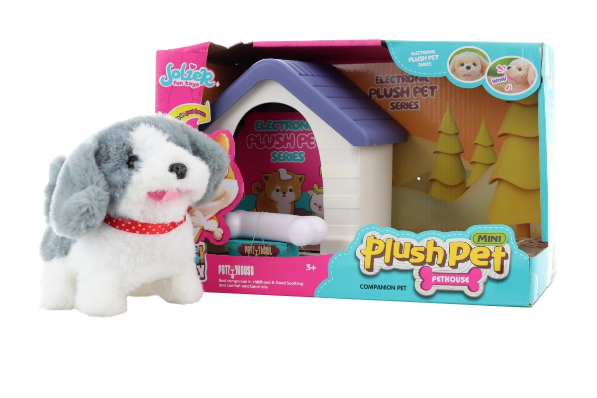 Balení obsahuje nejen pejska, ale také jeho boudu a hračku - kostičku. Vyrobeno z plastu a plyše, což zajišťuje příjemný dotek a vysokou odolnost. Skvělý dárek pro každou příležitost!