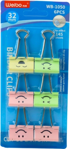 Sada kancelářských spon o velikosti 32 mm spojuje praktické využití s estetikou a humorem. Každá sponka je ozdobena rozesmátým obličejem, což z ní činí jedinečný doplněk pro každodenní organizaci dokumentů – ideální pro práci i školu.