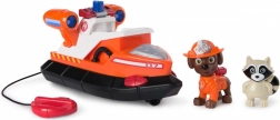Zuma, vysoký přes 5 cm ve svém hasičském obleku, je připraven zachránit situaci. Hasičská loď je vybavena záchranným kolem připevněným na lince, což zajišťuje plno akčních dobrodružství. Zumovi dodává šmrnc i malý mýval, kterého lze zachránit. Děti mohou stisknout tlačítko pro vystřelení záchranného kola, do kterého mýval perfektně padne. Díky originálnímu stylu Psi Patrol vypadá tato hračka přesně jako v seriálu, inspirující děti k prožívání dobrodružství.