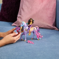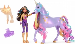 Jednorožec Gwiazda má výšku 12 cm a doplňuje vzhled Sophii krásnými detaily, jako jsou kovová znamení magie světla a 2 poloprůhledné klipy na nohou. Zajistěte, aby hříva Gwiazdy byla hladká a lesklá pomocí kartáče a při hře nechte Sophii bezpečně sedět na Gwieździe díky snímatelnému postroji a sedlu.
