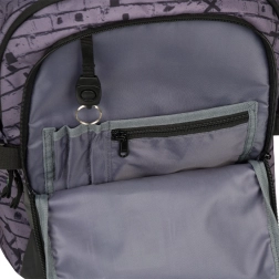 Na přední straně jsou dva popruhy, ideální pro upevnění skateboardu, bundy nebo helmy, což ocení především aktivní studenti. Batoh je vyroben z pevného a voděodolného materiálu a je vybaven reflexními prvky pro bezpečnost za snížené viditelnosti. Jako bonus naleznete kovový přívěsek ve tvaru skateboardu.