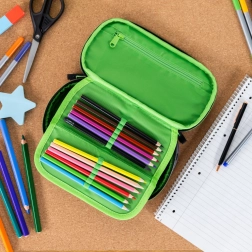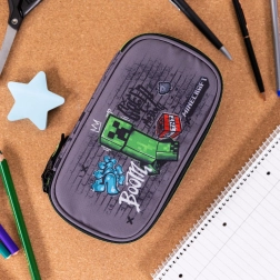 Kompaktní školní penál Baagl inspirovaný hrou Minecraft nabízí prostornou hlavní komoru a dvojitou výklopnou chlopní pro psací potřeby a drobnosti.