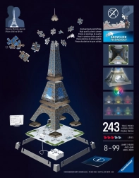Objevte nový rozměr skládaček s 3D puzzle RAVENSBURGER a vytvořte si věrný model Věže Eiffelovy. Díly z kvalitního plastu pevně drží pohromadě, takže ke stavbě nepotřebujete žádné lepidlo. Hotový model je stabilní, nedeformuje se a díky hladkému povrchu jej snadno očistíte vlhkým hadříkem.
