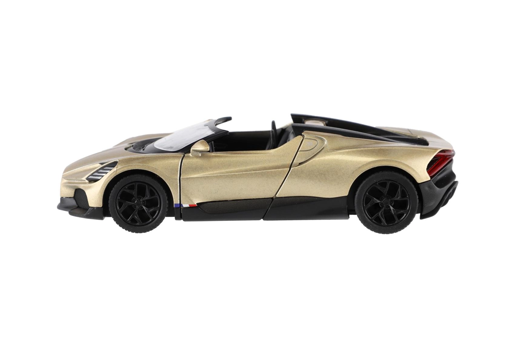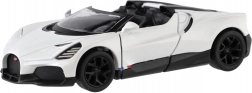 Tento detailně zpracovaný model BUGATTI MISTRAL přináší luxus a rychlost přímo do vaší vitríny i dětského pokoje. Karoserie z kovu s plastovými doplňky zajišťuje odolnost a věrný vzhled, zatímco funkce zpětného natažení poskytuje zábavnou a dynamickou jízdu.