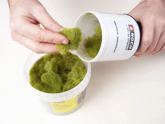 Ideální pro tvorbu louky, pastviny nebo mokřady díky různosti zelených odstínů. Vlákna o délce 2,5 mm jsou určena pro měřítko H0, ale také vhodná pro TT, N, Z, 0, 1, G, H0m, H0e. Pro vynikající výsledky můžete trávu aplikovat jak trávním rozprašovačem, tak elektrostatickou metodou pomocí speciálního zařízení.