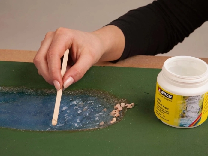 Modelová voda Noch pro snadné vytváření klidných vodních ploch v modelových krajinách. Vhodná pro začátečníky.