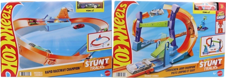 Hot Wheels Šampionát – závodní dráha s kaskadérskými překážkami. Kreativní stavění, hra pro 1+ autíček, kompatibilní s dalšími sety. Věk 5+.