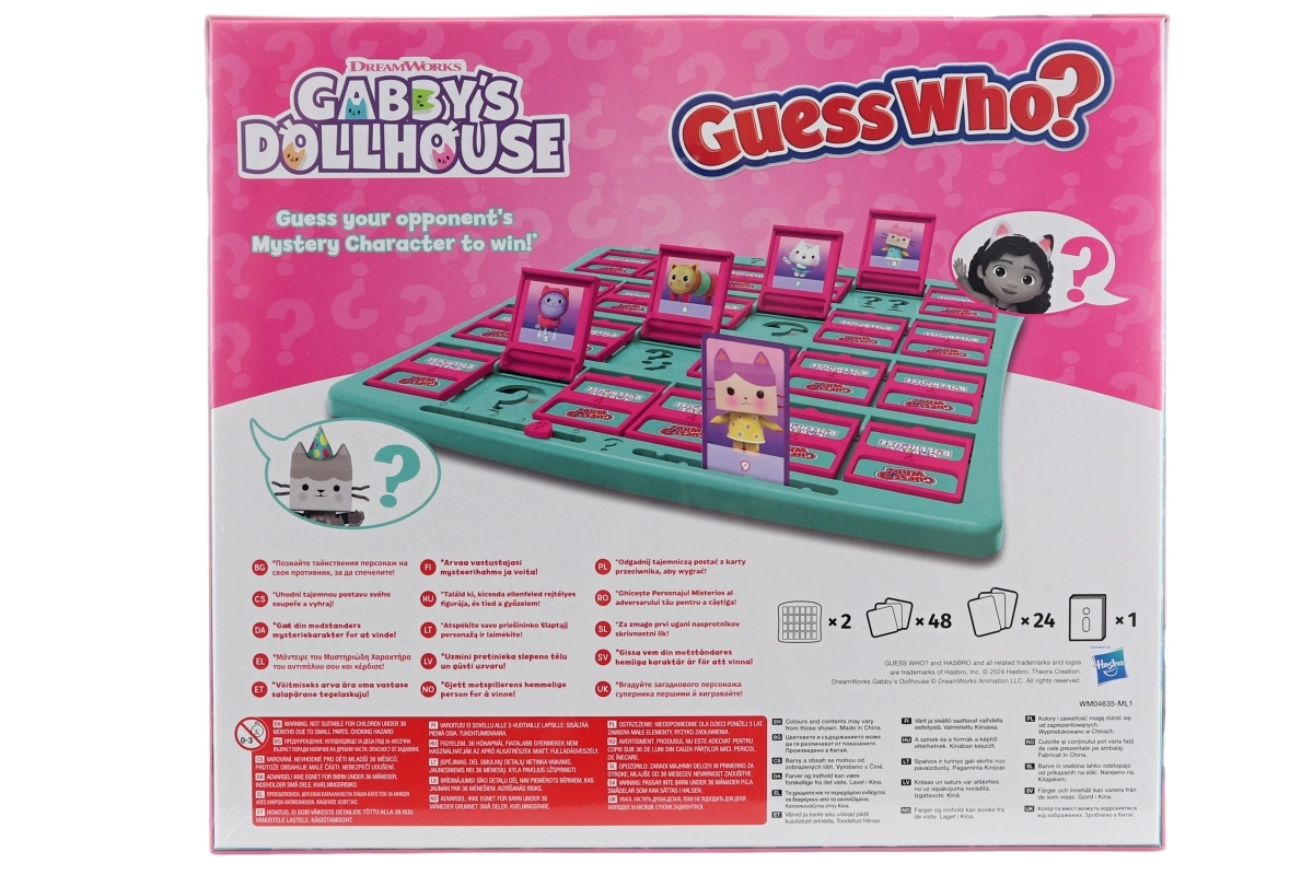 Objevte klasickou hru, která baví generace, v kouzelném kabátku Gabbys Dollhouse. Cílem hry je pomocí chytře kladených otázek co nejrychleji odhalit skrytou postavu soupeře. Díky známým postavičkám z Gábinina kouzelného domku si hru zamilují děti i rodiče.