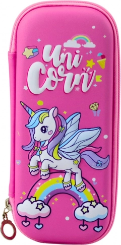 Tento barevný školní penál zdobený motivem pohádkového jednorožce je ideální pro děti, které ocení jak funkčnost, tak originální vzhled školních pomůcek. Pevná konstrukce chrání obsah před poškozením, zatímco uzavíratelná komora na zip zajišťuje pohodlné a bezpečné uložení pomůcek.