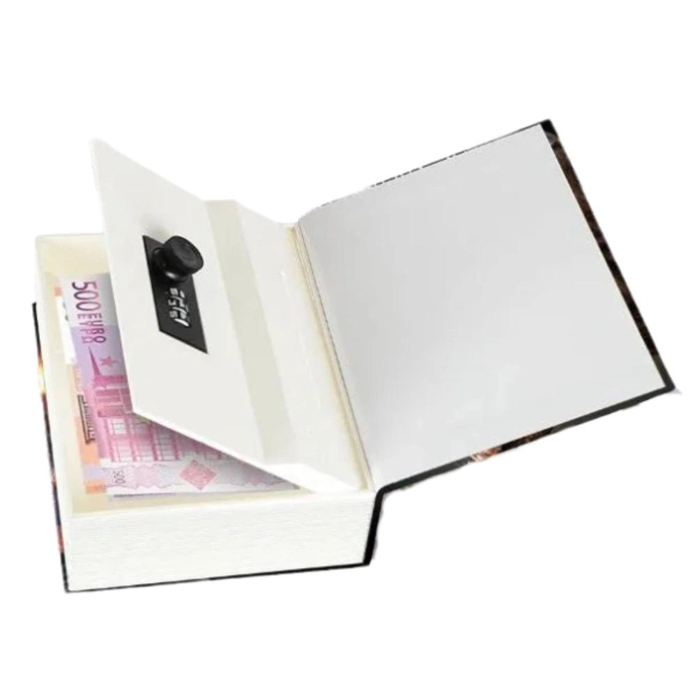 Uvnitř se ukrývá kovová schránka se zámkem na číselný kód (počáteční kód: 000), která spolehlivě chrání úspory i vzácné drobnosti. Pokladnička má otvor pro vhazování mincí a bankovek bez nutnosti otevření celé schránky.