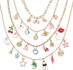 S kreativitou pozvedněte svůj styl pomocí této super trendy sady na výrobu náhrdelníků. Sada obsahuje elegantní kolekci 32 přívěsků včetně 4 překvapení a 4 různé délky řetízků pro tvorbu módních náhrdelníků.