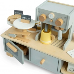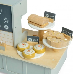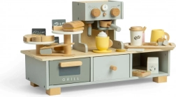 S dětskou kavárenskou sadou Bigjigs Toys se Vaše dítě stane kreativním baristou. Sada nabízí širokou škálu příslušenství jako je kávovar, servírovací pult s grilem, úložná zásuvka, a mnoho chutně vypadajících doplňků jako jsou zákusky, šálky, podšálky, a kelímek na kávu s sebou.