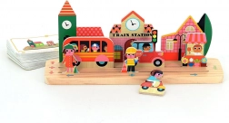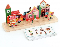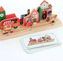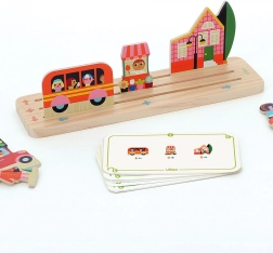 Tato dřevěná logická skládačka s krásnými ilustracemi od Ingely P. Arrhenius hravou formou rozvíjí dětské dovednosti. Pomocí dřevěných dílků a hracích karet se děti učí vnímat vztahy mezi předměty, jako jsou vlevo, vpravo, nahoře, dole a uprostřed, a správně je umístit podle zadání.