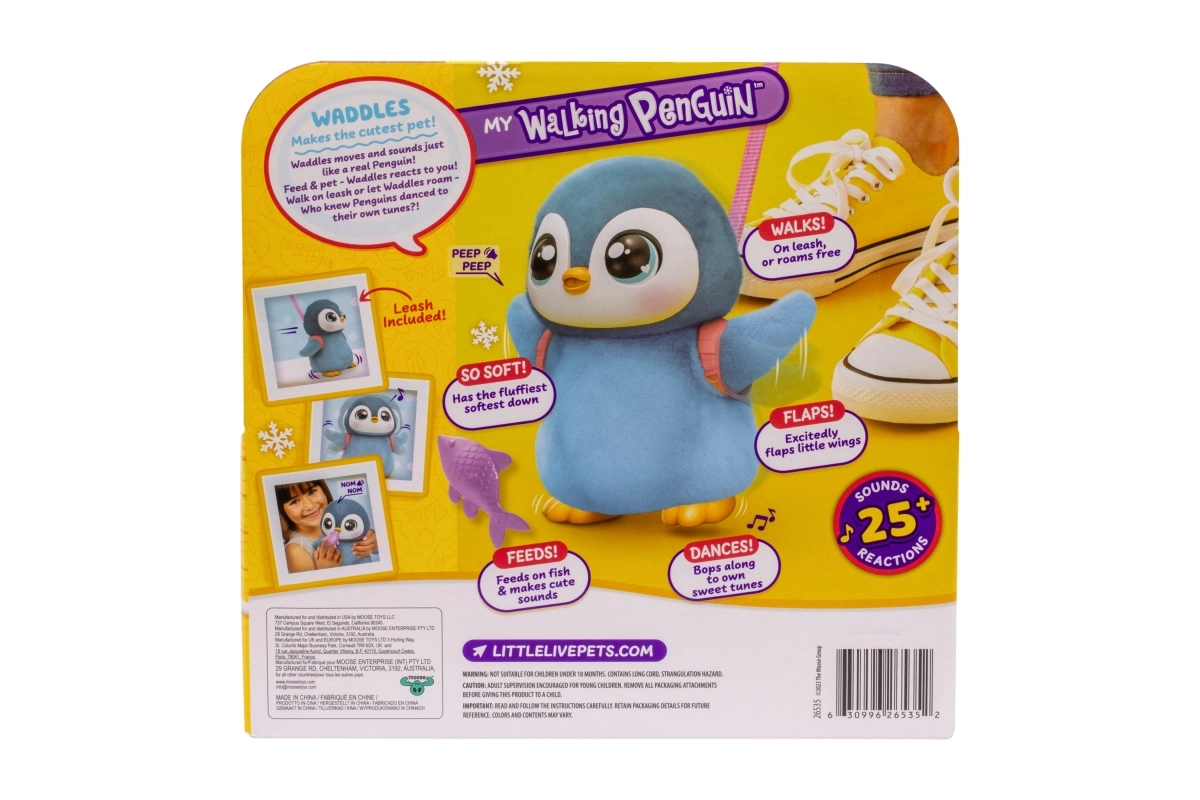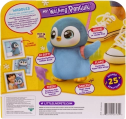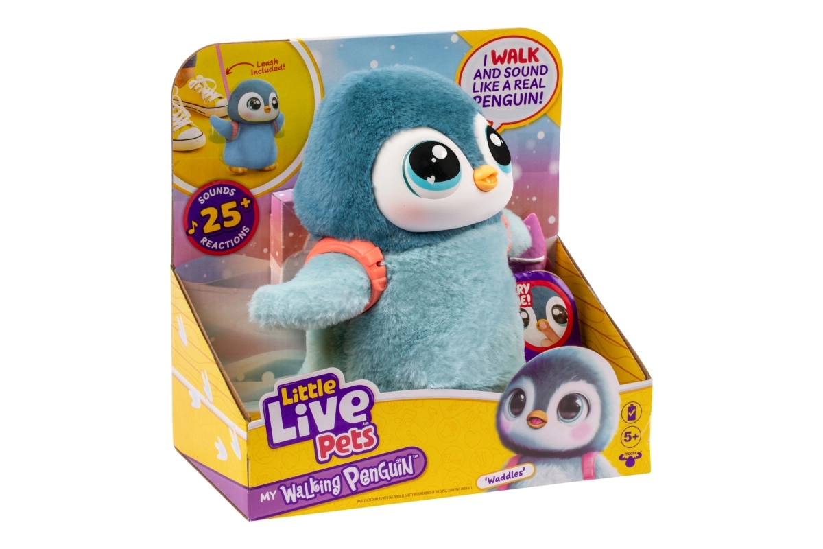 Objevte roztomilého kamaráda pro děti – interaktivního plyšového tučňáka z řady Little Live Pets, který chodí, mává křídly a kývá hlavou. Umí přes 25 zvuků a reakcí, reaguje na dotek, krmí se rybičkami a díky měkké nadýchané srsti je ideální na mazlení. Součástí je odnímatelné vodítko pro procházky a hraní.