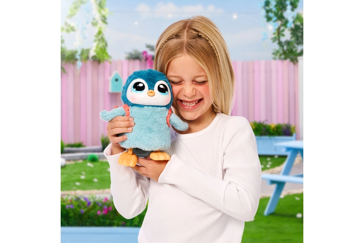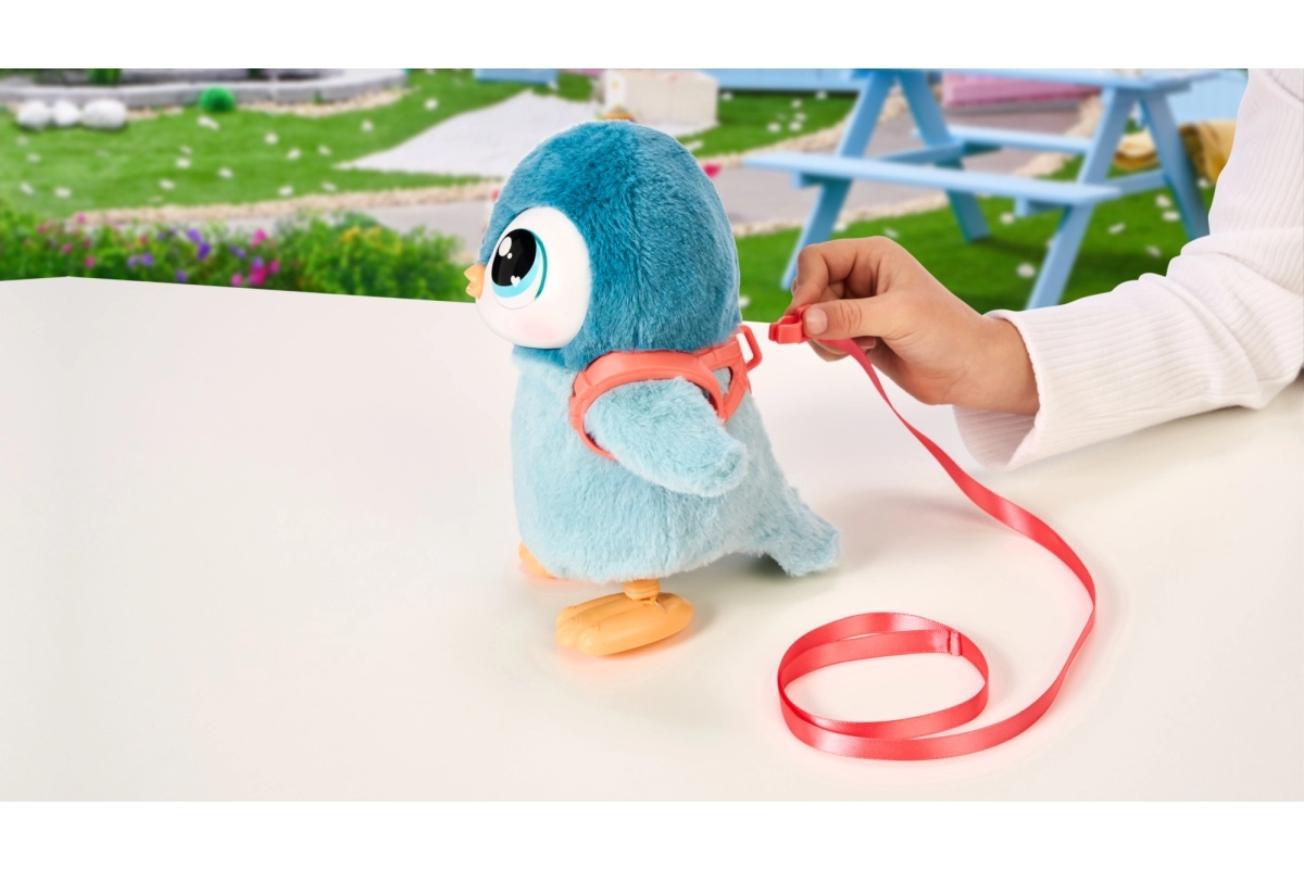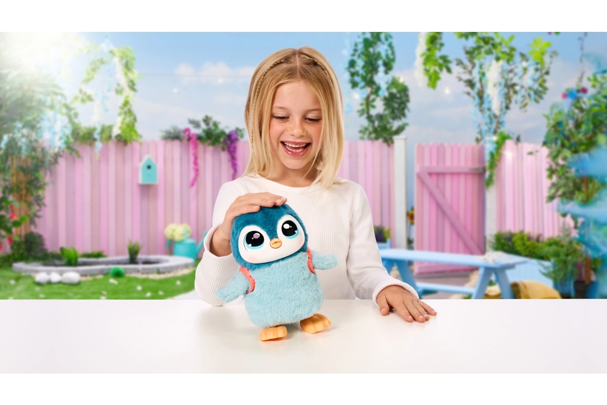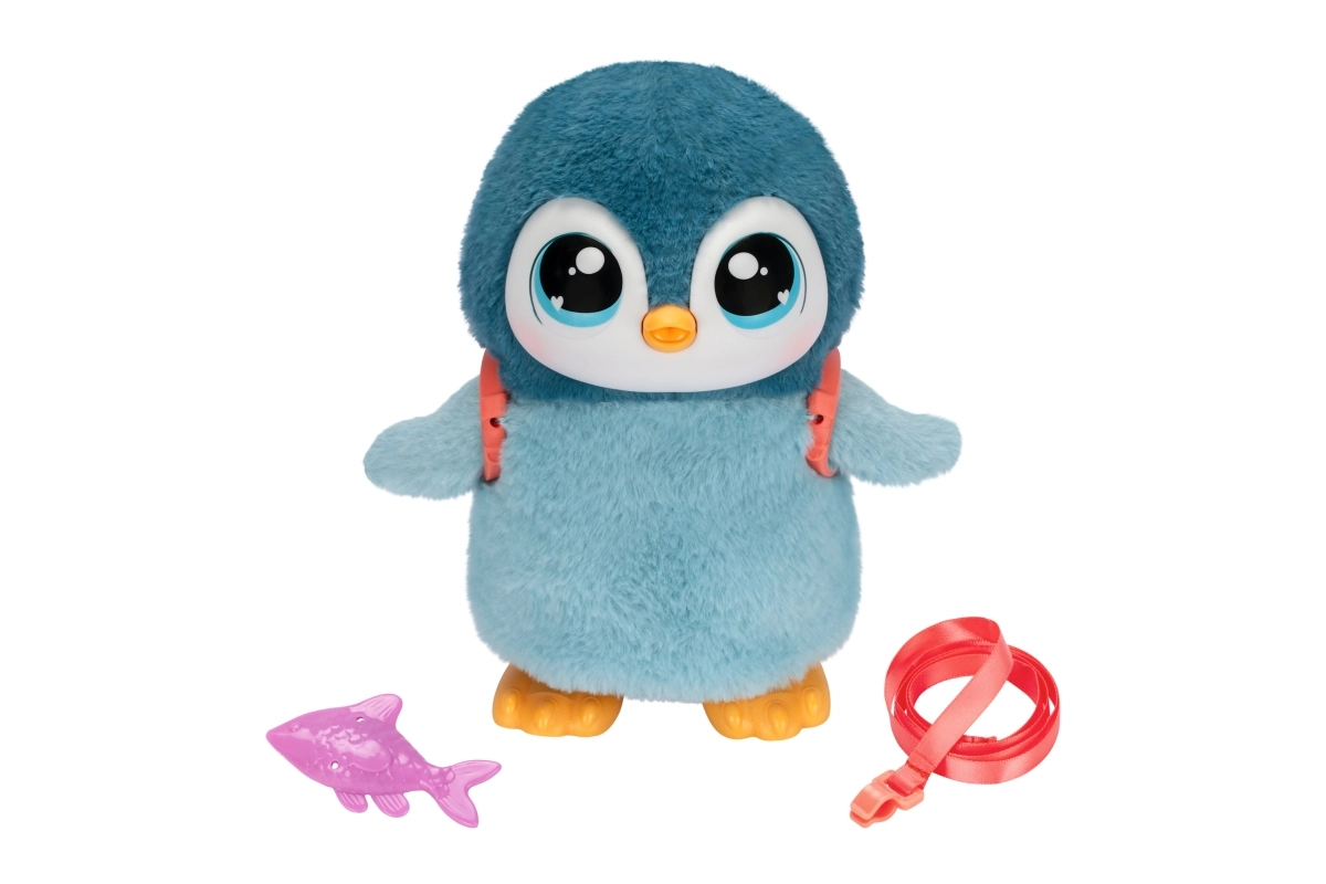 Tento rozkošný tučňák přináší dětem spoustu interaktivní zábavy. Po připojení vodítka se dokáže procházet, mává křídly, kývá hlavou a reaguje na vaše pohlazení. Vydává roztomilé zvuky – od krmení, chichotání až po kýchnutí – a občas i legrační zvuky, které děti pobaví.