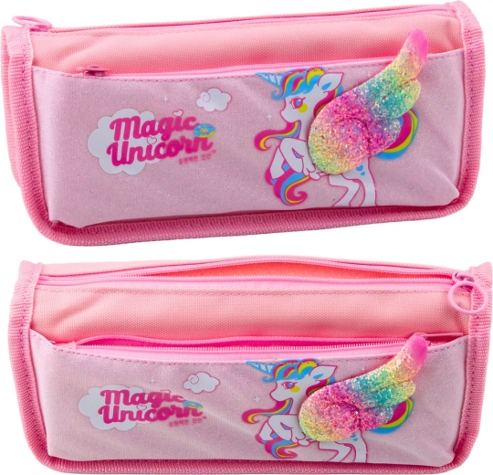 Tento penál se vyznačuje úchvatným pohádkovým potiskem a vystupujícím brokátovým křídlem, které vytváří efekt trojrozměrnosti a dodává mu magický vzhled. Estetiku penálu doplňuje přední kapsa na zip, ideální pro drobnosti, ke kterým dítě potřebuje rychlý přístup.