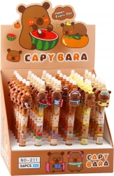 Automatické pero s motivem kapybary nabízí nejen funkčnost, ale i zábavný design, který ocení všichni obdivovatelé těchto zvířat. Na vrcholu pera je dekorativní 3D figurka vyrobená z měkké gumy, kterou lze snadno stisknout, což vytváří hravý element.