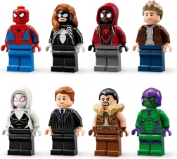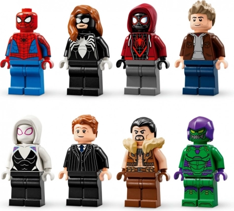 V balení najdete 8 sběratelských minifigurek – Spider-Man, Spider-Woman, Miles Morales (s motocyklem), Eddie Brock, Ghost-Spider, Norman Osborn, Kraven lovec a Zelený goblin (s kluzákem). Díky modulárnímu řešení set snadno přestavíte a vytvoříte si vlastní akční ulice pro hraní i vystavení.