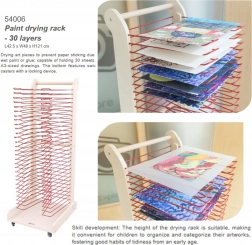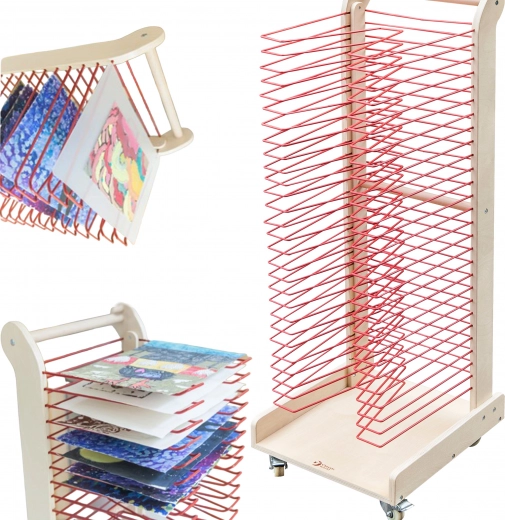 Stojan na sušení výtvarných prací je nezbytným vybavením každé třídy, pokoje nebo kulturního místa. Díky mechanismu zablokování koleček zůstávají dětská díla bezpečně na místě. Praktický úchop a kvalitní kolečka usnadňují přenesení během několika okamžiků.