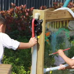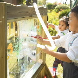 Dětská oboustranná tabule značky CLASSIC WORLD je ideální pro malování prstovými a vodovými barvami. Navržena pro práci dvou dětí zároveň, kde každé kreslí na jednu stranu tabule. Po dokončení kreslení mohou děti použít pumpičku k rozprašování vody pro snadné čištění.