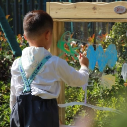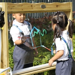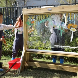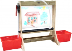 Dětská tabule v pevné dřevěné konstrukci s průhledným akrylovým povrchem je perfektní volbou pro kreativní hry. Umožňuje kreslení z obou stran, což podporuje kooperaci a společenské interakce mezi dětmi.