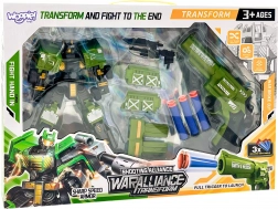 Woopie zelený transformující bojový robot 3v1 s vozidlem a vystřelovačem pěnových šipek