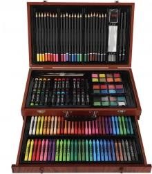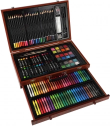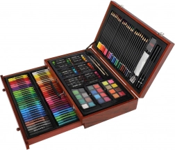 Univerzální kreativní set pro malé i větší umělce obsahuje celkem 143 dílů pro malování, kreslení a tvoření. Vše je přehledně uložené v elegantním dřevěném kufříku se zavíráním o rozměrech 38 × 25 × 8 cm. Ideální pro domácí tvoření, školní projekty i cestování. Vhodné pro děti od 14 let.