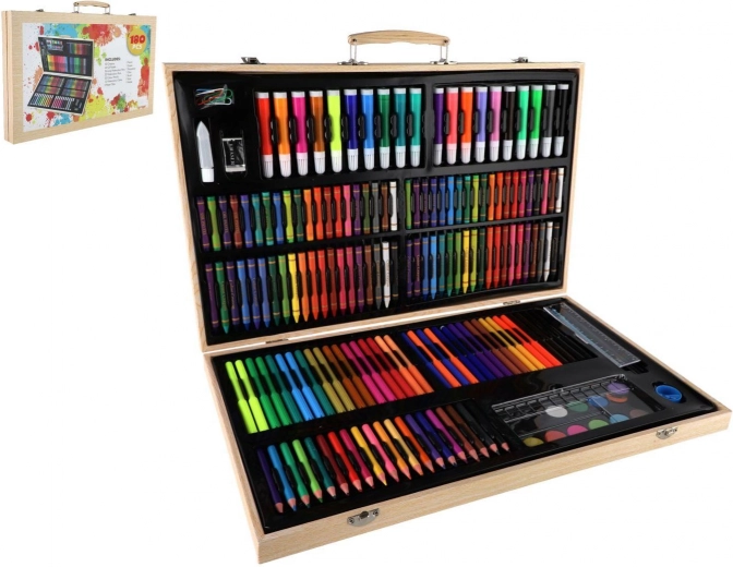 Tato bohatá sada na malování a kreslení je ideální pro začátečníky i pokročilé nadšence. Vše, co potřebujete pro tvorbu, máte pohromadě v praktickém kufříku z dřeva, který udrží náčiní přehledně uspořádané a vždy po ruce.