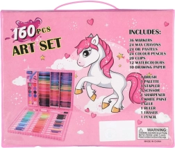 Tato bohatě vybavená výtvarná sada potěší každého malého umělce. Dekor s jednorožcem zaujme na první pohled a praktický plastový kufřík udrží všechny pomůcky přehledně na jednom místě. Díky široké škále barev a typů psacích potřeb je sada perfektní pro kreslení, malování, vybarvování i první umělecké projekty.