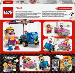 Zažijte rychlé závody, ostré drifty a vzrušující souboje se skořápkami. Set přináší 2 postavy – Wario a King Boo – a detailně zpracované modely kár Badwagon a Teddy Buggy s funkčními koly. Badwagon má navíc odnímatelný kluzák, který lze nasadit i na Teddy Buggy, takže můžete během hry plynule přepínat mezi jízdou a „plachtěním“.