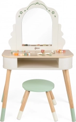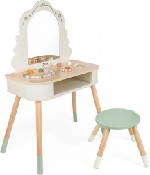 Dřevěný toaletní stolek od Classic World je navržen speciálně pro malé dívky, které sní o vlastním koutku na hraní nalíčit a oblékání. Zahrnuje kulatou stoličku, zrcadlo a různé doplňky, které pomáhají rozvíjet jejich představivost a manuální zručnost.
