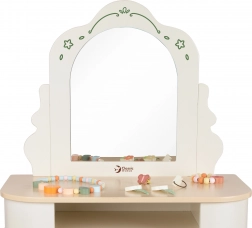 - Toaletní stolek s kulatým zrcadlem, stolička, 4 sponky do vlasů, náhrdelník, náramek