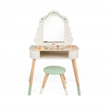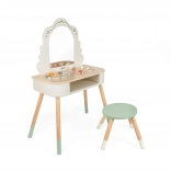 Dřevěný toaletní stolek od Classic World je navržen speciálně pro malé dívky, které sní o vlastním koutku na hraní nalíčit a oblékání. Zahrnuje kulatou stoličku, zrcadlo a různé doplňky, které pomáhají rozvíjet jejich představivost a manuální zručnost.