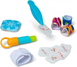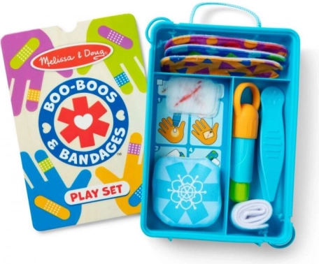 Ošetřovací sada Melissa & Doug, která dětem umožňuje hrát si na doktory. Děti si mohou vytvořit fiktivní škrábance a pomocí přiložených nástrojů je odstranit.