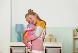 Lehká a odolná klokanka udrží panenku bezpečně na hrudi, takže si děti mohou hrát a pomáhat s volnýma rukama kdekoli.
