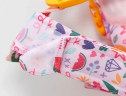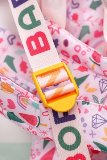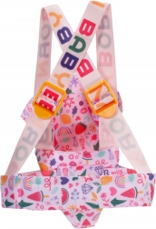 Široké, polstrované a křížené popruhy s bezpečnými přezkami se snadno přizpůsobí různě velkým dětem a drží panenku jistě u těla.