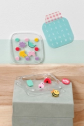 Sada barevných ozdob pro snadné nacvaknutí umožní dětem měnit vzhled klokanky podle nálady. Součástí je i krabička na uložení.