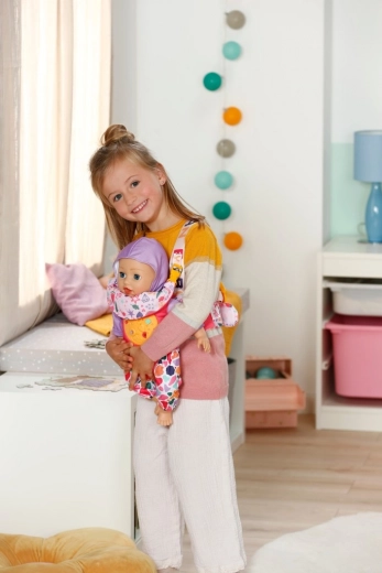 Klokanka BABY born je měkký a pohodlný nosítkový doplněk, díky kterému mohou děti nosit svou oblíbenou panenku všude s sebou. Široké a polstrované popruhy s plynulým nastavením se snadno přizpůsobí různě velkým dětem a zajistí jisté a stabilní nošení. Styl dotváří hravé nacvakávací ozdoby, které lze podle nálady obměňovat, a praktická krabička pro jejich uložení.