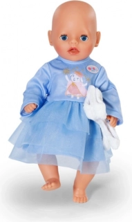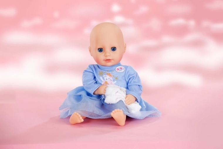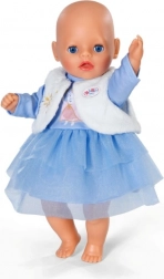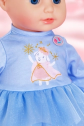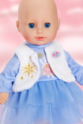 Stylové zimní oblečení pro panenky velikosti 36 cm zahrnuje modré šaty s dlouhými rukávy, vrstvenou tylovou sukýnkou a sametově hebkou vestu. Díky jednoduchému střihu je oblékání snadné i pro nejmenší. Set v hravých pastelových barvách přináší kouzelný zimní vzhled, pohodlné oblékání a spoustu kreativní zábavy.