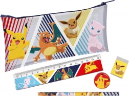 Oficiálně licencovaný školní set s motivem POKÉMON obsahuje vše, co děti potřebují do školy i na doma: penál, tužku s gumou, gumu, ořezávátko a pravítko. Kompaktní velikost 19 × 11 cm se snadno vejde do batohu a je skvělá i jako dárek. Vhodné pro děti od 3 let.