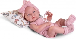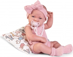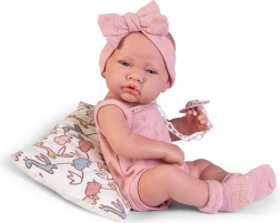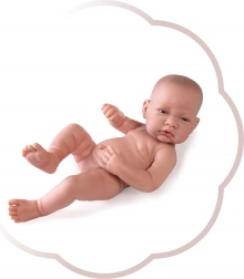 Tato ručně vyráběná španělská panenka nabízí mimořádně věrné zpracování – jemné rysy obličeje, miminkovské faldíky i detailní tvarování celovinylového těla. Měkčený vinyl je hebký na dotek a snadno se udržuje, takže si děti mohou užívat jak hru, tak péči, včetně bezpečného koupání panenky.