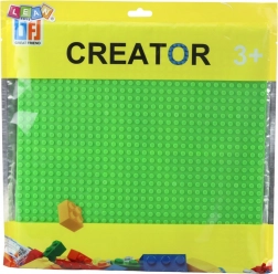 Konstrukční deska je vyrobena z vysoce kvalitního plastu, který zajišťuje odolnost proti ohýbání a praskání. Hladký povrch s hustými výstupky umožňuje přesné a stabilní uchycení kostek. Deska je vhodná jak pro domácí použití, tak pro školy, herny či vzdělávací centra.