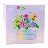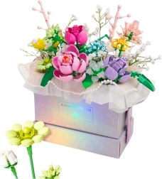 Stavebnice nabízí barevnou květinovou kompozici ve stylovém boxu, která spojuje vzhled přírodních kytic s radostí z vlastní tvorby. Box s kovovým leskem a textilní ozdobnou tkaninou doplňuje efekt celku a vytváří kouzelný dárek.