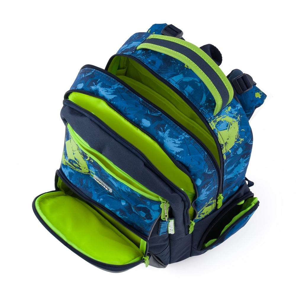 Díky mnoha prostorným kapsám včetně velkého hlavního oddílu a menších bočních kapes je tento batoh perfektní pro úhledné uspořádání školních potřeb a sportovního vybavení.
