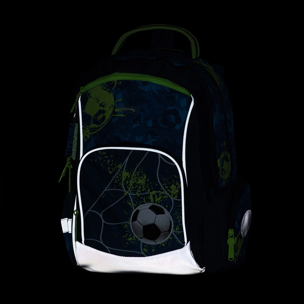 Tento stylový školní batoh Oxy Go je ideální volbou pro malé fanoušky fotbalu. Navržen s ohledem na pohodlí i bezpečnost, nabízí dostatek prostoru pro knihy, učebnice i sportovní vybavení, anatomicky tvarovaná záda a reflexní prvky.