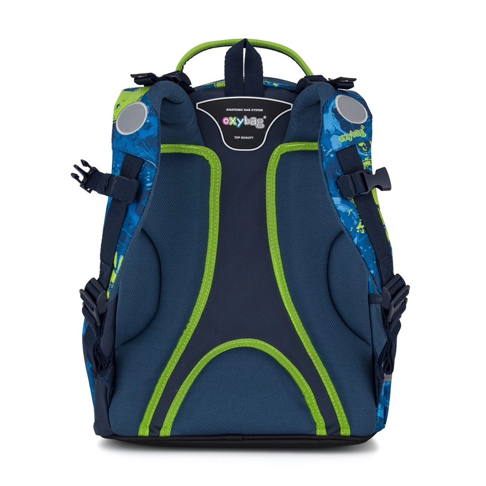 Školní batoh Oxy Go přitahuje pozornost svým moderním designem a promyšlenými detaily. Je vybaven několika prostornými kapsami, včetně velkého hlavního oddílu, menších bočních kapes a přední kapsy na zip. Ergonomický design zahrnuje pohodlné polstrované popruhy a prodyšná záda, což zajišťuje komfortní nošení po celý den.