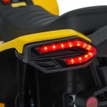 Čtyřkolka je vybavena bohatým multimediálním panelem – přehrajete oblíbené písničky přes USB, MP3, FM rádio nebo Bluetooth. Funkční LED osvětlení vpředu i vzadu zvyšuje viditelnost a atraktivitu. Pomalý start, dvě rychlosti a volba směru vpřed/vzad pomáhají dětem jezdit bezpečně a sebejistě.