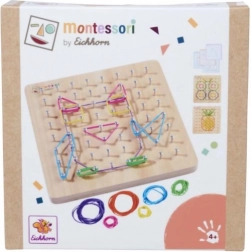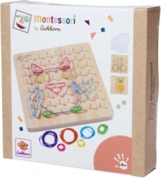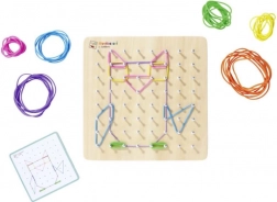 Tato Montessori geometrická deska je navržena pro podporu dětské kreativity a motorických dovedností. S 64 hřebíky a 60 barevnými gumičkami mohou děti vytvářet řadu vzorů a tvarů: