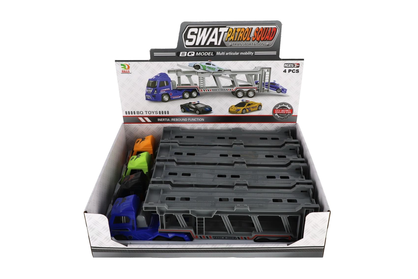 Vydejte se na policejní zásah s tímto skvělým kamionem přepravníkem. Tato hračka má dvoupatrový výklopný návěs, který zajišťuje skvělou hratelnost a dostatek prostoru pro vaše vozidla.