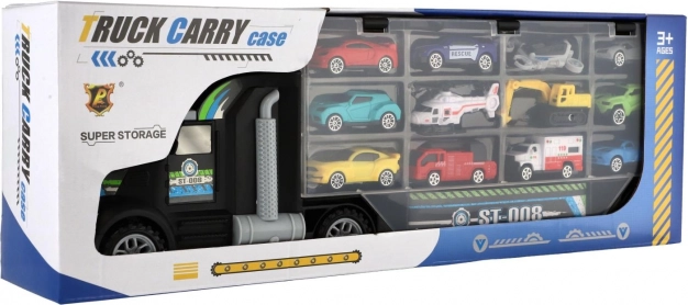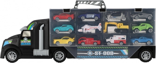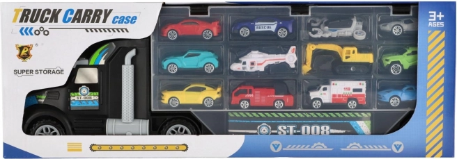 Velký přepravní kamion s dopravními prostředky, ideální hračka pro děti od 3 let.